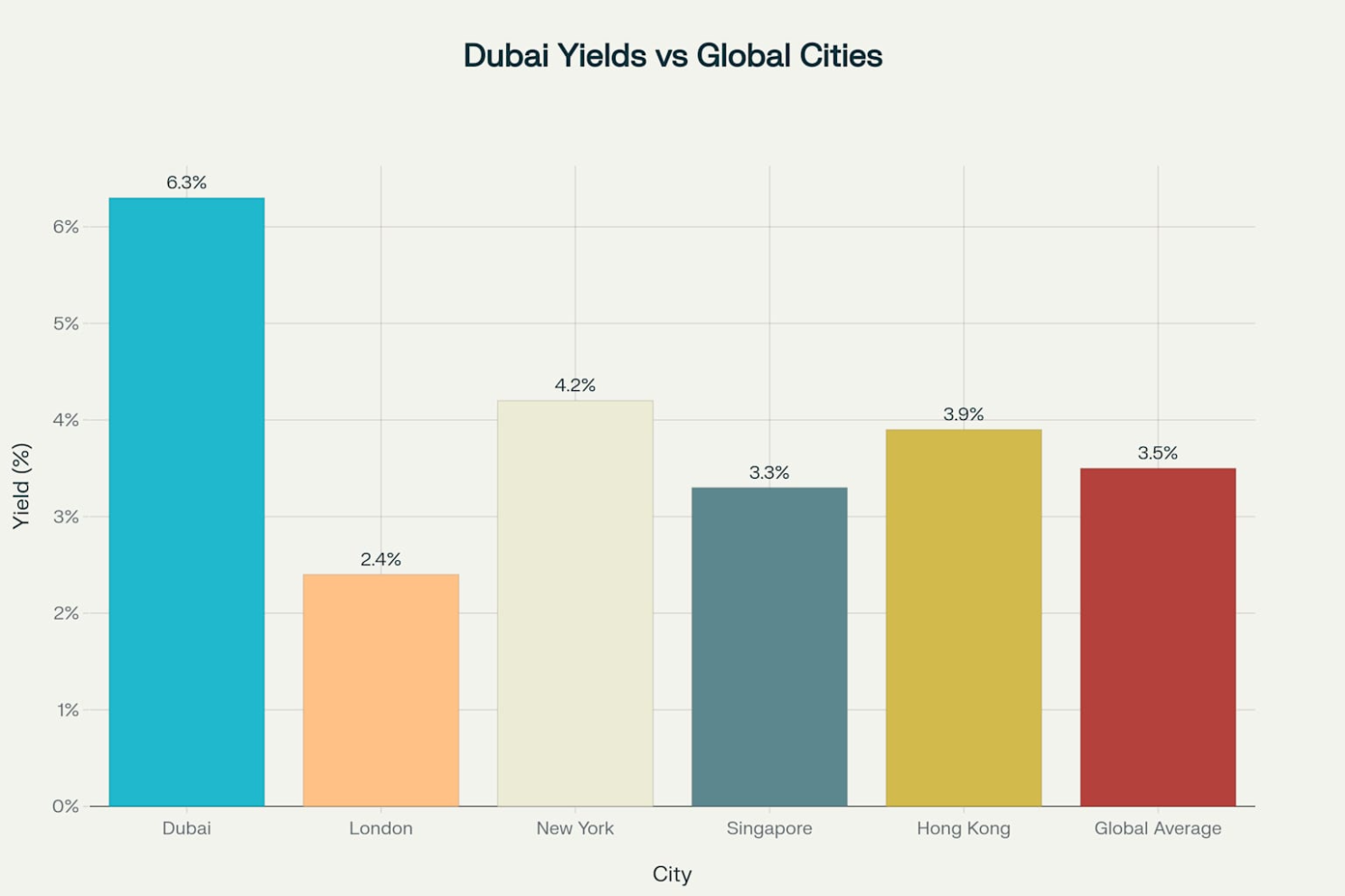 Dubai delivers superior rental yields compared to major global real estate markets, supporting strong investment returns